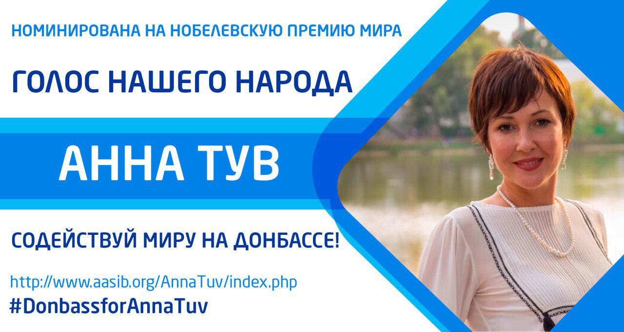 ОБЩЕСТВЕННОЕ ДВИЖЕНИЕ «ДОНЕЦКАЯ РЕСПУБЛИКА» ПРИЗЫВАЕТ ПОДДЕРЖАТЬ ЖИТЕЛЬНИЦУ ДОНБАССА, ОБЩЕСТВЕННОГО ДЕЯТЕЛЯ! АННА ТУВ, кандидатура которая выдвинута итальянской благотворительной организацией «Помогите спасти детей» на Нобелевскую премию мира