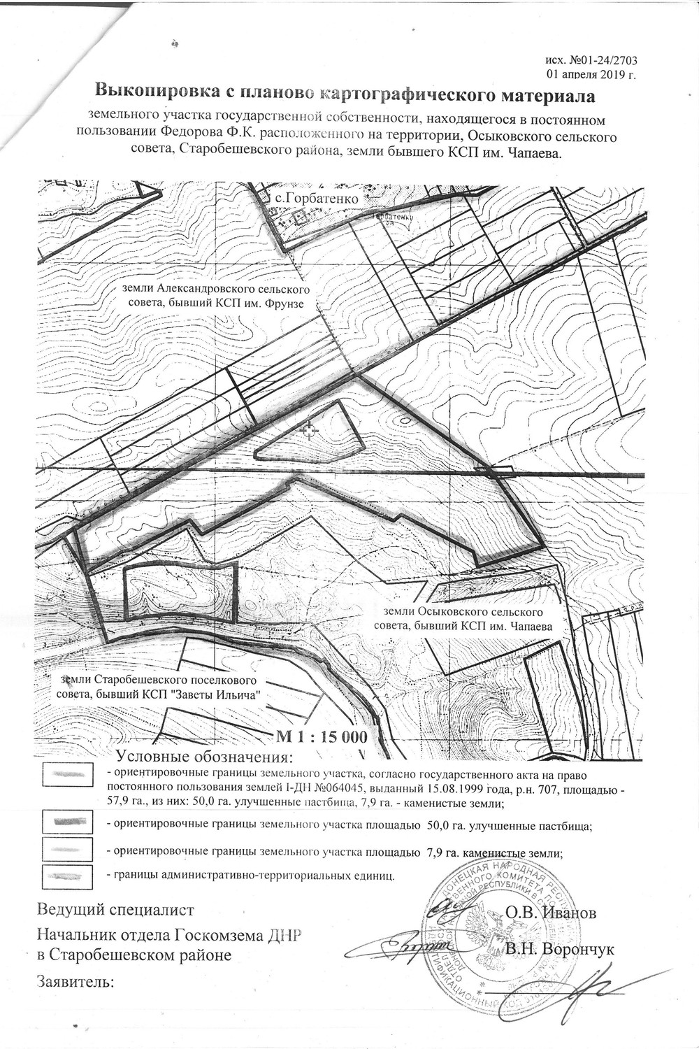 17 апреля 2019 года в администрацию Старобешевского района поступило ходатайство (заявление) о предоставлении разрешения на разработку землеустроительной документации на земельный участок площадью 57,9 га (из них 50,0 га улучшенные пастбища , 7,9 га