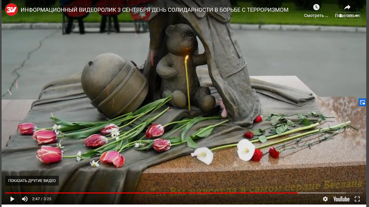 Терроризм — жестокое преступление. В нашей стране ежегодно 3 сентября отмечается день консолидации государства и общества против действий террористов — День солидарности в борьбе с терроризмом.