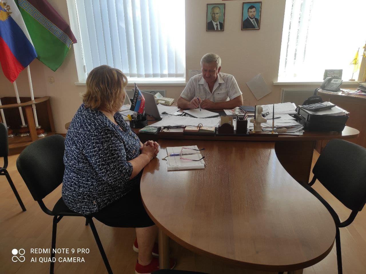 Сегодня, 9 июля, глава администрации района Николай Михайлов провел рабочую встречу с представителем территориального центра социального обслуживания администрации Старобешевского района.
