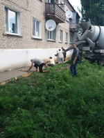 Сегодня, 9 июля, в рамках мероприятий по повышению эксплуатационных характеристик систем и объектов жилищно-коммунального хозяйства Донецкой Народной Республики в 2021 году, утвержденных Постановлением Правительства Донецкой Народной Республики от 30.12.2020 г. № 89-4 проводятся бетонные работы по устройству отмостки жилого дома расположенного по адресу: пгт. Старобешево, пер. Кузьминова, 32.
