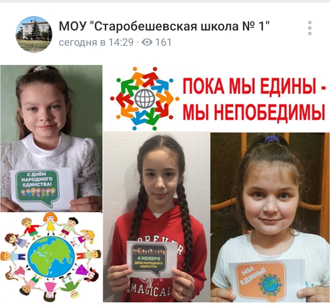 В муниципальных общеобразовательных учреждениях Старобешевского района 03 ноября 2021 года прошли дистанционные часы, посвященные Дню народного единства. Классными руководителями были подготовлены веб – презентации об истории возникновения Дня народного единства; онлайн - беседы о подвигах людей; заочные флешмобы; диспуты на темы мужества и чести. Обучающиеся проверили свои знания по биографиям героев народного ополчения - Д. Пожарском и К. Минине; просмотрели документальные фильмы на историческую тематику.
