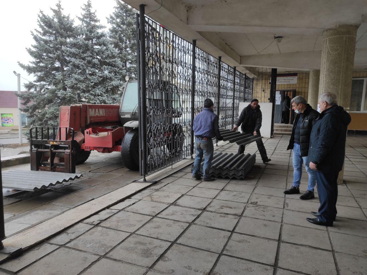Сегодня, 10 декабря, глава администрации района Николай Михайлов проинспектировал работу по ремонту части кровли Старобешевского ЦКиД им. П.Н. Ангелиной, которая пострадала в связи с погодными условиями.Строительная бригада, из числа квалифицированных специалистов, состоящих на учете в Старобешевском районном центре занятости, приступила к ремонту аварийного участка кровли на площади 150 кв.м.