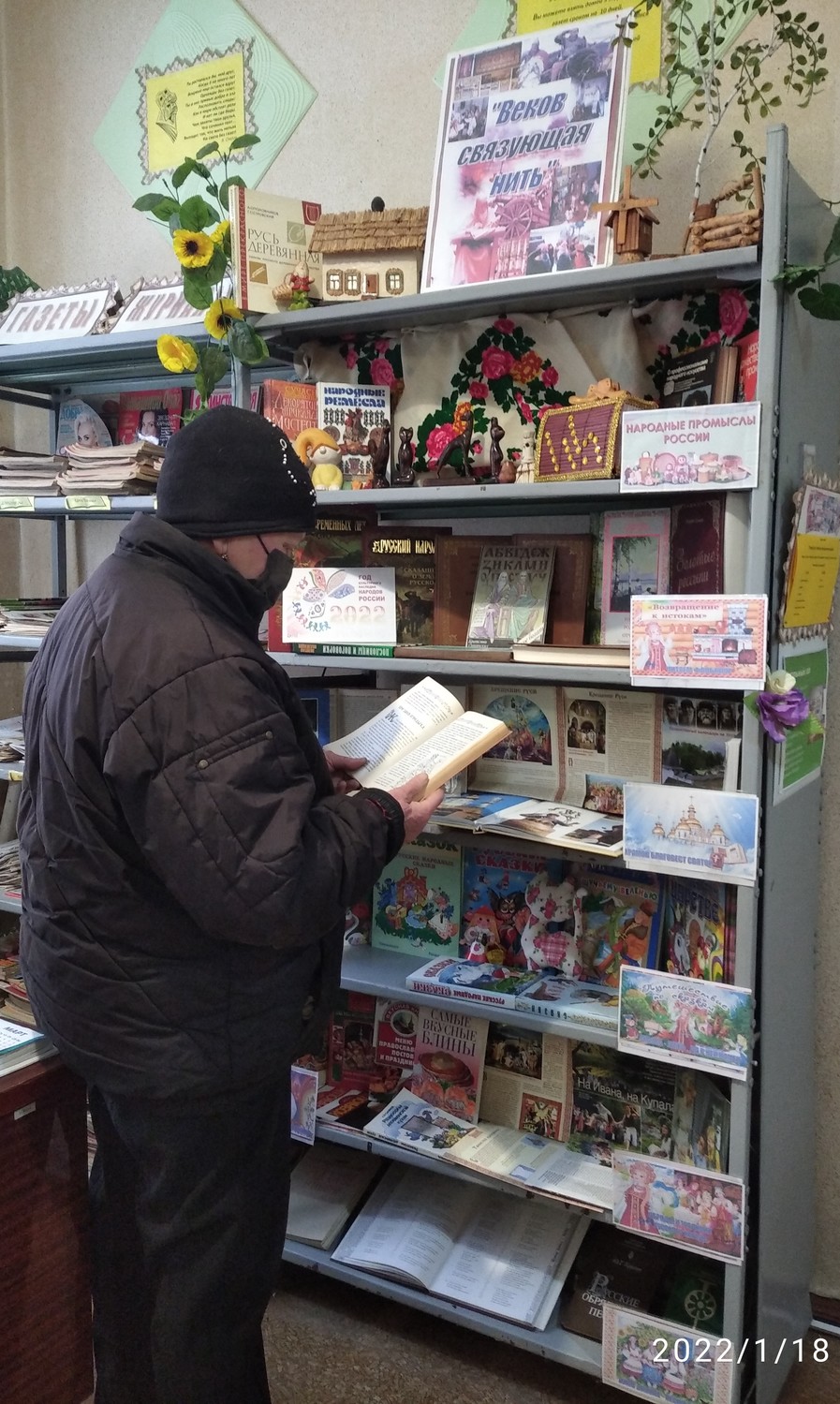 К году народного искусства и нематериального культурного наследия народов России, в Старобешевской центральной районной библиотеке оформлена выставка – народного творчества «Веков связующая нить». На выставке представлены увлекательные и познавательные разделы, такие как «Народные промыслы России», «Возвращение к истокам.