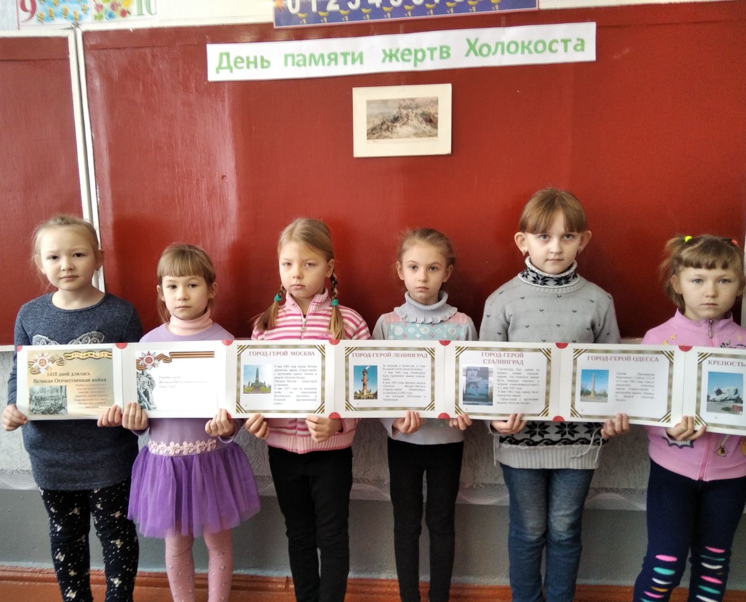 27 января - Международный день памяти жертв Холокоста. В этот день весь цивилизованный мир склоняет голову перед жертвами варварских акций нацистов, ставших трагическим прологом Холокоста. В преддверии этого дня 24 января в МБОУ «Кумачовская школа» в 1 классе прошел воспитательный час «День памяти жертв Холокоста». Дети ознакомились с трагедией Холокоста как одним из примеровбесчеловечности. Обучающиеся совместно с учителем собрали информацию о жертвах Холокоста, Бабьего Яра. Итогом работы стало создание лэпбук «Города-герои».