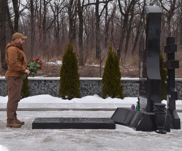 Глава Донецкой Народной Республики Денис Пушилин возложил цветы к месту захоронения Героя ДНР, командира батальона «Сомали» Михаила Толстых (позывной Гиви) на столичном кладбище «Донецкое море».