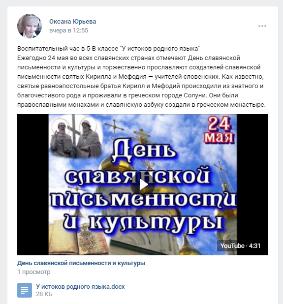 Ежегодно 24 мая в нашей стране отмечается День славянской письменности и культуры. Связан этот праздник с именами святых равноапостольных братьев Кирилла и Мефодия – славянских просветителей, создателей славянской азбуки, проповедников христианства, первых переводчиков богослужебных книг с греческого на славянский язык. Именно они – болгарские просветители Кирилл и Мефодий, создали первую славянскую азбуку, которой мы пользуемся по сей день. Азбука получила свое название от имени младшего из братьев – кириллица.