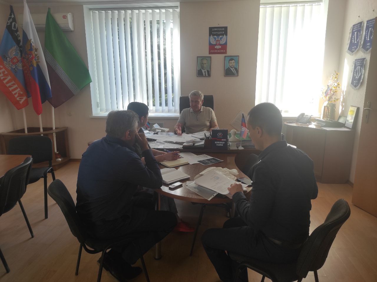 Сегодня, 26 мая 2022 года, глава администрации района Николай Михайлов провел оперативное совещание с заместителями главы и управляющим делами администрации Старобешевского района. Присутствующие доложили о проделанной работе за 25 мая, определили первостепенные задачи на сегодня.