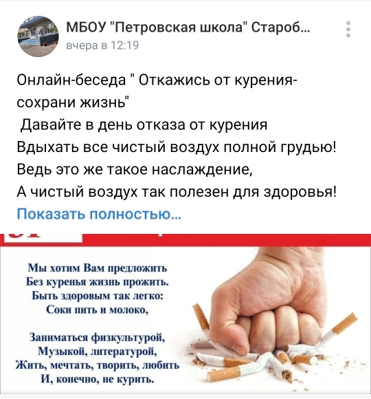 Сегодня, 31 мая 2022 года, в муниципальных бюджетных общеобразовательных учреждениях Старобешевского района прошли единые заочные мероприятия, посвященные Всемирному дню без табака.