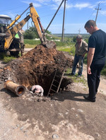 Сотрудниками Старобешевского участка Докучаевского ПУВКХ КП «Компания «Вода Донбасса» проводятся работы по устранению аварийной ситуации на уличном водопроводе Д-125 мм (пластик) по улице Победы в поселке Старобешево.
