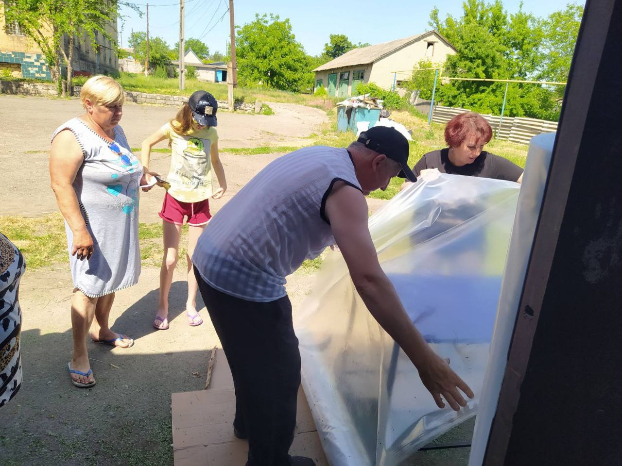 Сегодня, 3 июня, администрацией Старобешевского района жителям поселка Ольгинка выдана пленка для временного закрытия теплового контура (окон) частных жилых домов, полученная от Министерства строительства и жилищно-коммунального хозяйства Донецкой Народной Республики.