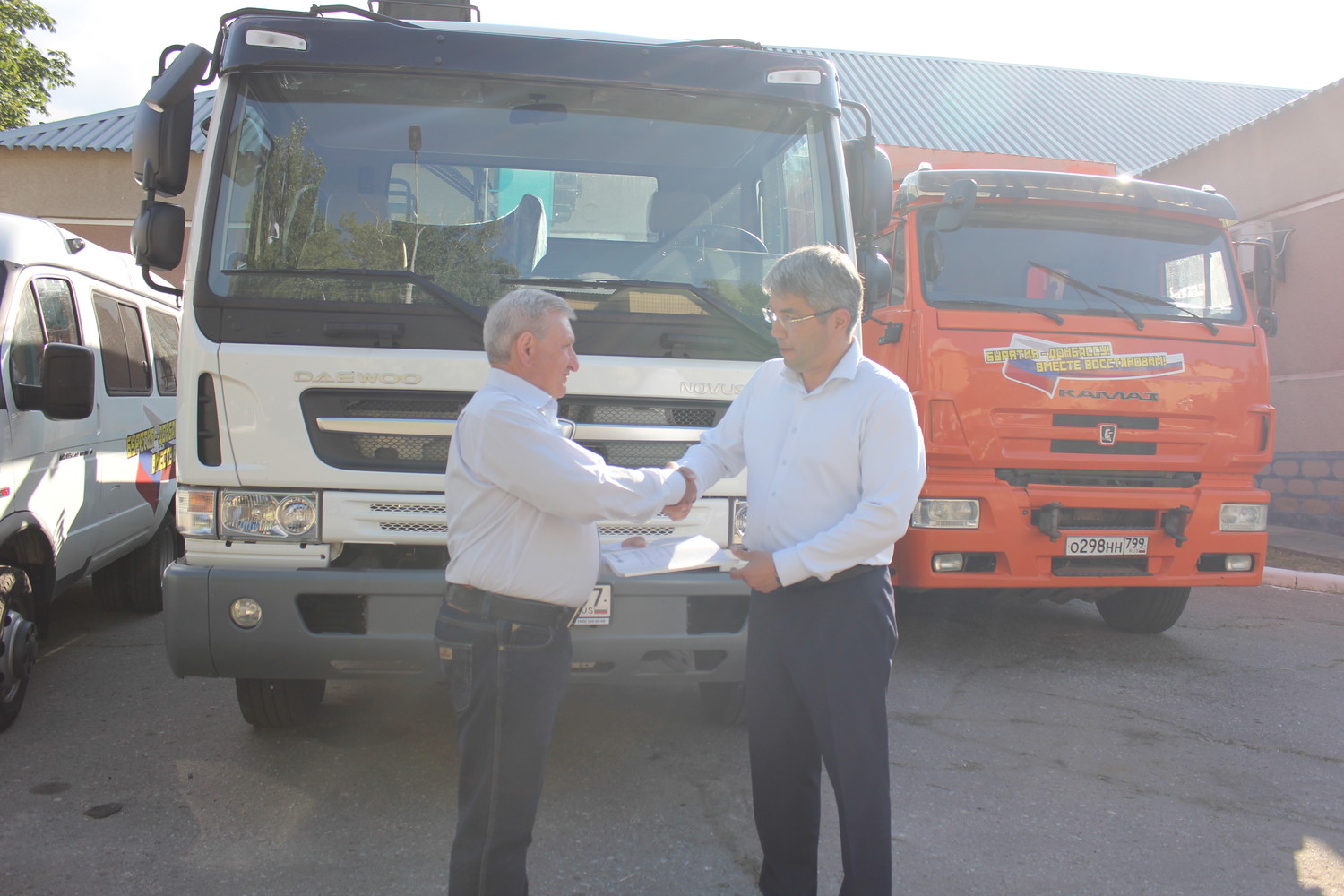 16 июня представители Республики Бурятия доставили в Старобешевский район специализированную автотехнику: пассажирское транспортное средство ГАЗель, специальное, грузовое транспортное средство, оснащенное краном-манипулятором и самосвал КАМАЗ 6520-53.