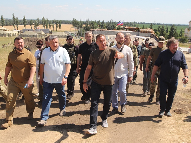 В среду, 6 июля, Глава Донецкой Народной Республики Денис Пушилин провел выездное совещание на территории мемориального комплекса «Саур-Могила», где силами Российского военно-исторического общества и Министерства обороны Российской Федерации ведутся работы по его реконструкции. В мероприятии приняли участие заместитель председателя Российского военно-исторического общества Николай Овсиенко, заместитель исполнительного директора Российского военно-исторического общества Алексей Кондратьев, и. о. министра культуры ДНР Михаил Желтяков, и. о. министра строительства и жилищно-коммунального хозяйства ДНР Владимир Ярошевский, глава администрации города Шахтерска Александр Шатов.