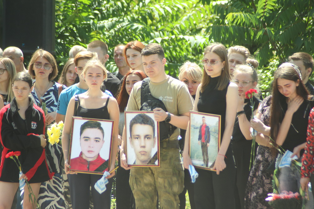 Во вторник, 12 июля, в столице ДНР состоялась траурная церемония прощания с активистами общественной организации «Молодая Республика», погибшими в результате обстрела со стороны вооруженных формирований Украины: Глебом Дыбовым, Глебом Сасиным и Артуром Синягиным. Проститься с молодыми людьми, которые были похоронены на Аллее Героев столичного кладбища «Донецкое море», пришли Глава Донецкой Народной Республики Денис Пушилин, первый заместитель руководителя Администрации Президента Российской Федерации Сергей Кириенко, первый заместитель Председателя Совета Федерации Федерального Собрания Российской Федерации, секретарь Генерального совета партии «Единая Россия» Андрей Турчак, депутат Государственной Думы Дмитрий Саблин, руководитель общественного движения «Молодая Республика» Кирилл Макаров.