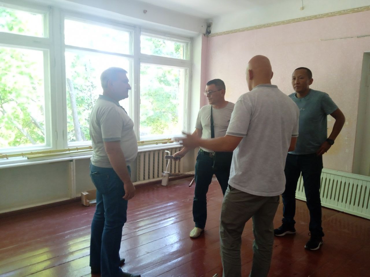 Сегодня, 20 июля, глава администрации района Николай Михайлов с целью осмотра хода выполнения ремонтно-восстановительных работ на объектах социального значения, выполняемых в рамках Соглашения о сотрудничестве между администрацией Старобешевского района и Республикой Бурятия, совместно с представителями делегации Республики Бурятия и подрядными организациями, посетили детские сады «Сказка», «Золотой ключик», «Тополек» и школу в городе Комсомольское, а также Кумачовскую школу.