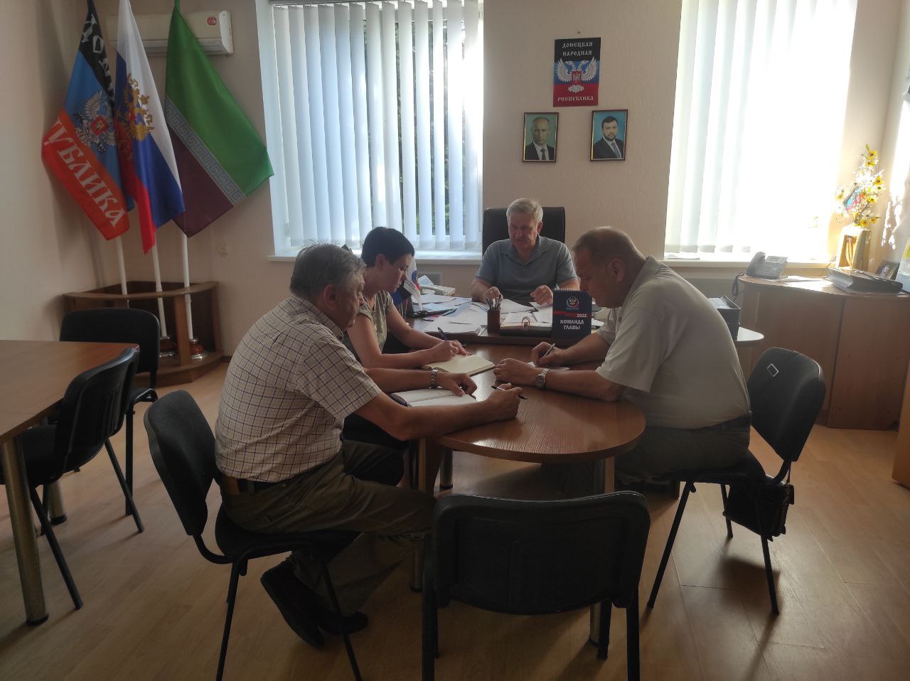 Сегодня, 28 июля, глава администрации Николай Михайлов провел оперативное совещание с заместителями главы и управляющим делами администрации Старобешевского района. Присутствующие доложили о проделанной работе за 27 июля, определили первостепенные задачи на сегодня, Николай Петрович дал соответствующие поручения.