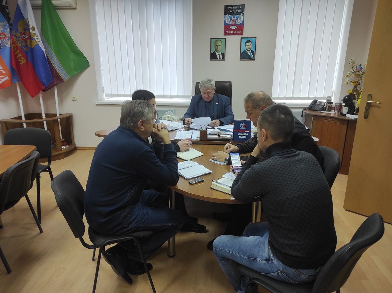 Сегодня, 11 октября, глава администрации Старобешевского района Николай Михайлов провел оперативное совещание с заместителями главы и управляющим делами администрации Старобешевского района.