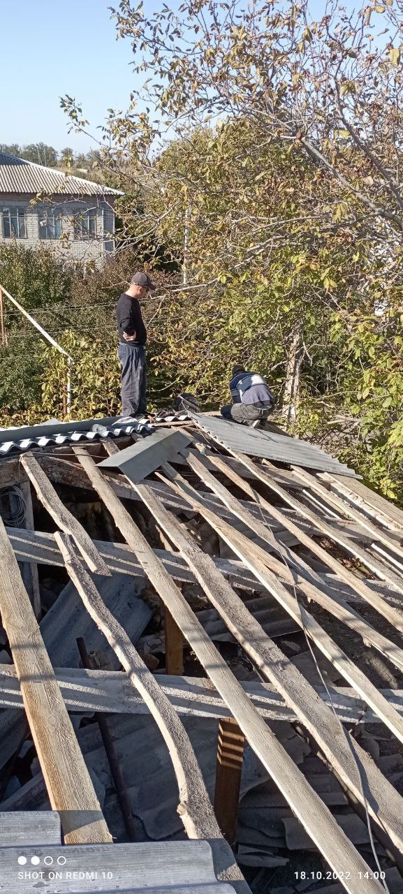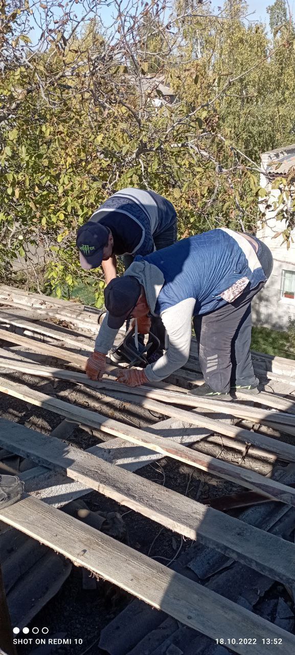 Строительной бригадой, сформированной из числа квалифицированных специалистов, состоящих на учете в Старобешевском районном центре занятости, совместно с сотрудниками МУП "Старобешевское" продолжаются работы по плановому ремонту шиферной кровли многоквартирного жилого дома