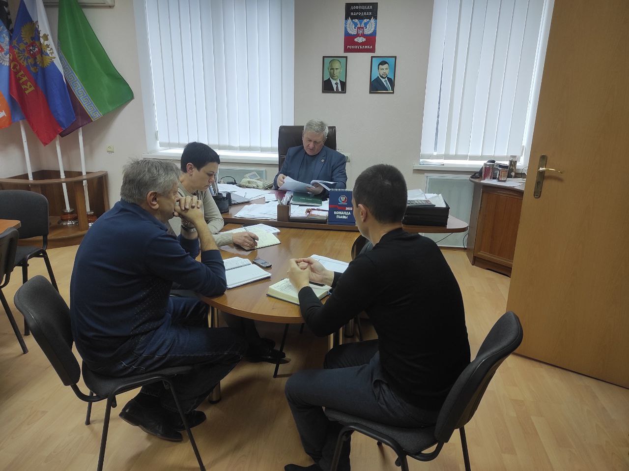 Сегодня, 24 октября, глава администрации Старобешевского района Николай Михайлов провел оперативное совещание с заместителями главы и управляющим делами администрации Старобешевского района.