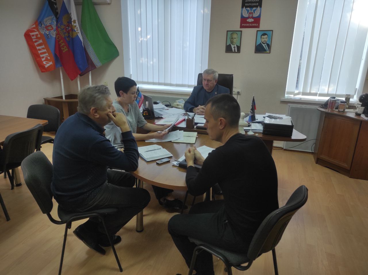 Сегодня, 3 ноября, глава администрации Старобешевского района Николай Михайлов провел оперативное совещание с заместителями главы и управляющим делами администрации Старобешевского района.