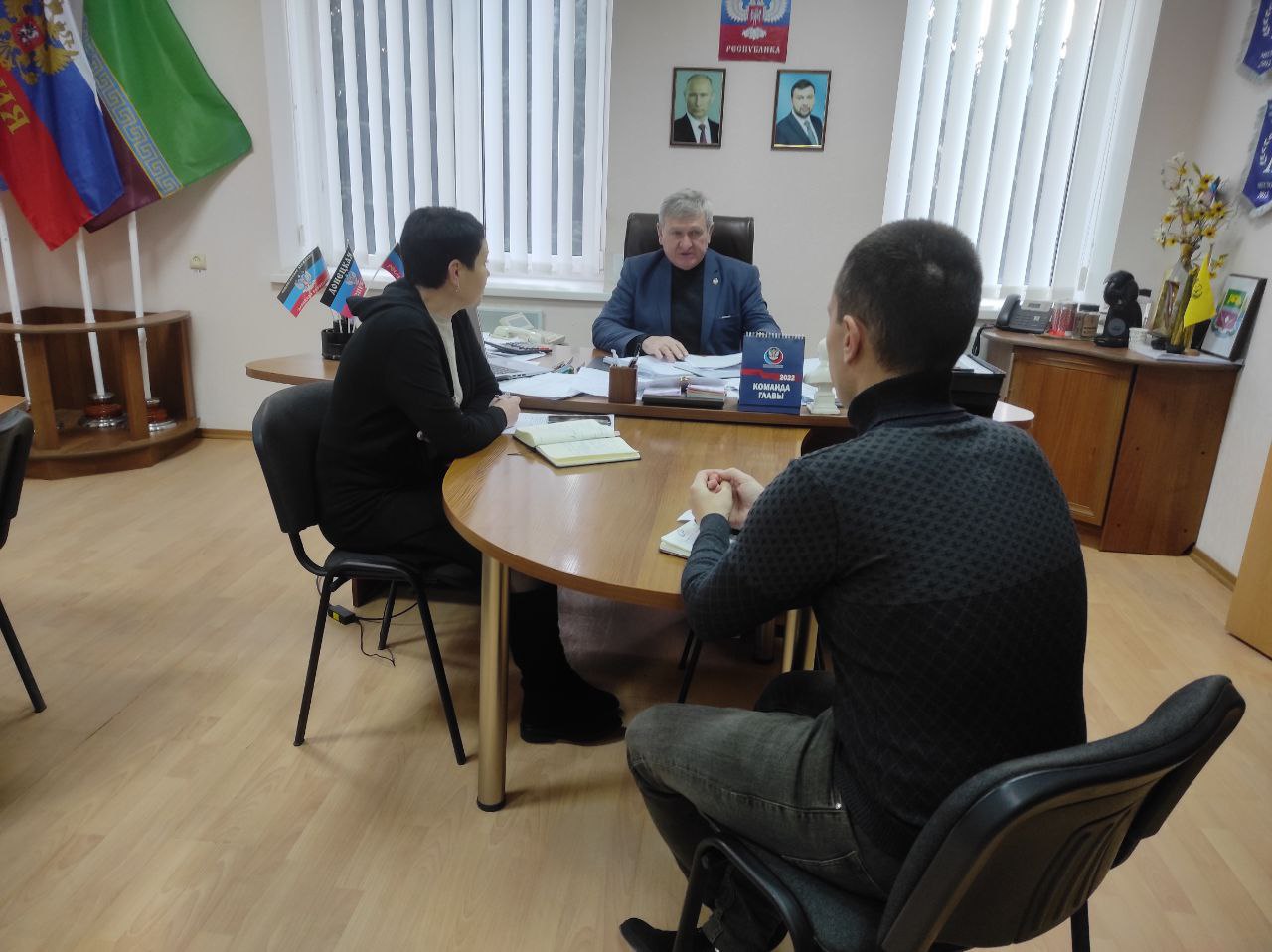 Сегодня, 7 декабря, глава администрации Старобешевского района Николай Михайлов провел оперативное совещание с заместителем главы администрации Старобешевского района и управляющим делами администрации Старобешевского района.