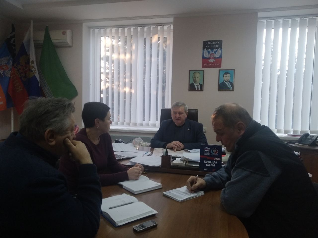 Сегодня, 9 февраля, глава администрации Старобешевского района Николай Михайлов провел оперативное совещание с заместителями главы и управляющим делами администрации Старобешевского района. Присутствующие обсудили текущую ситуацию в районе, доложили о проделанной работе за 8 февраля, определили первостепенные задачи на сегодня, Николай Петрович дал соответствующие поручения.