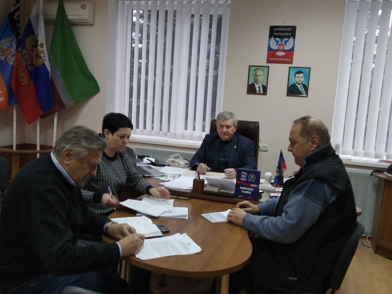 Сегодня, 14 февраля, глава администрации Старобешевского района Николай Михайлов провел оперативное совещание с заместителями главы и управляющим делами администрации Старобешевского района.