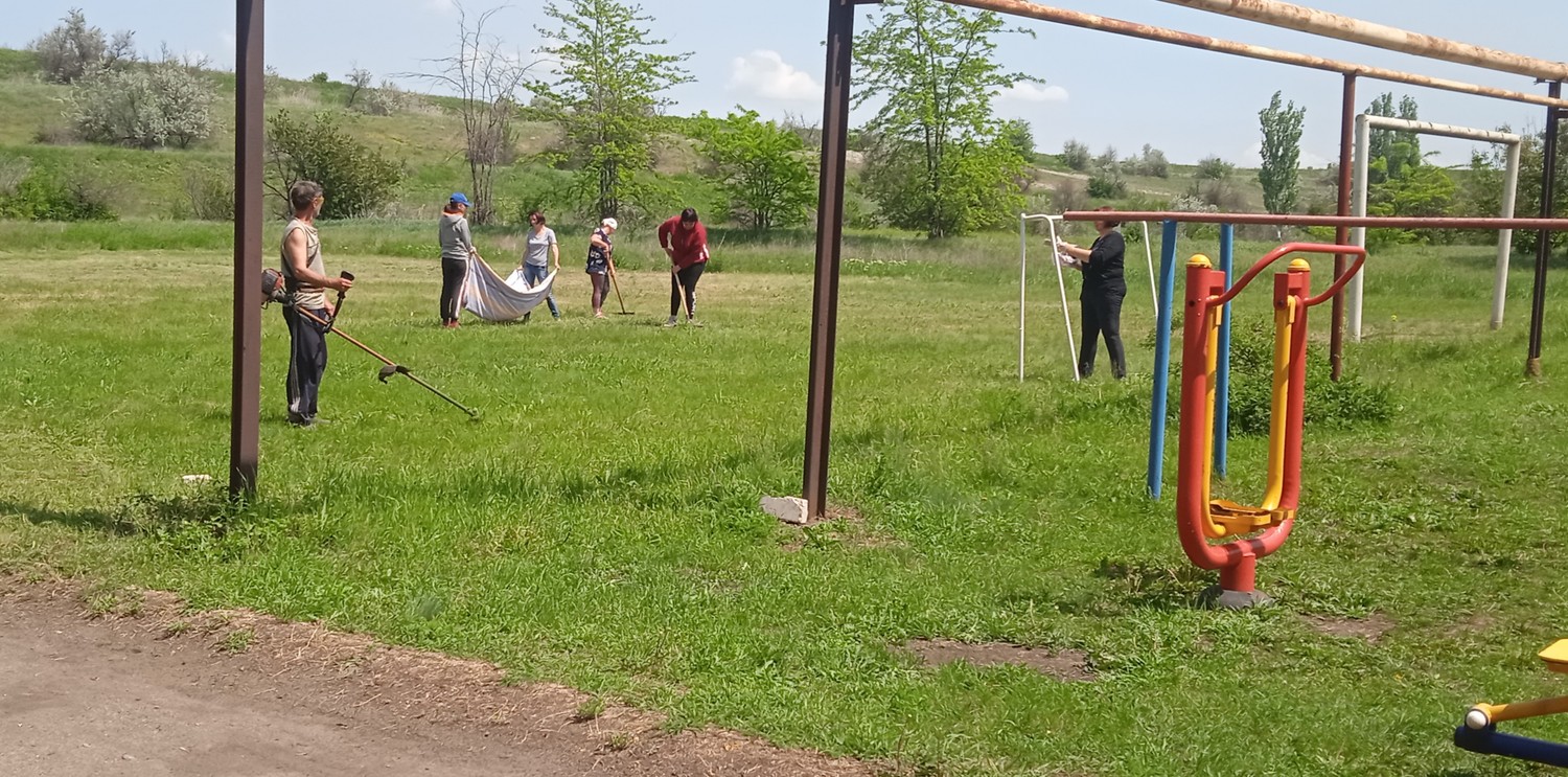 Продолжаются работы по благоустройству и наведению санитарного порядка в населенных пунктах на территории Старобешевского района, а также в освобожденных населенных пунктах, временно включенных в зону влияния и ответственности Старобешевского района, силами работников занятых на работах временного характера. Сегодня, 26 мая в селе Александровка, силами рабочих был наведён порядок на спортивной площадке, произведён покос травы и покраска футбольных ворот