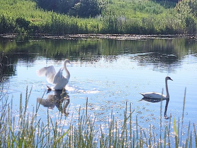 На водоёмы пгт.Благодатное вернулись лебеди. Во время военных действий все лебеди исчезли. Их было очень много в мирное время, но даже пара на пруду радует местных жителей