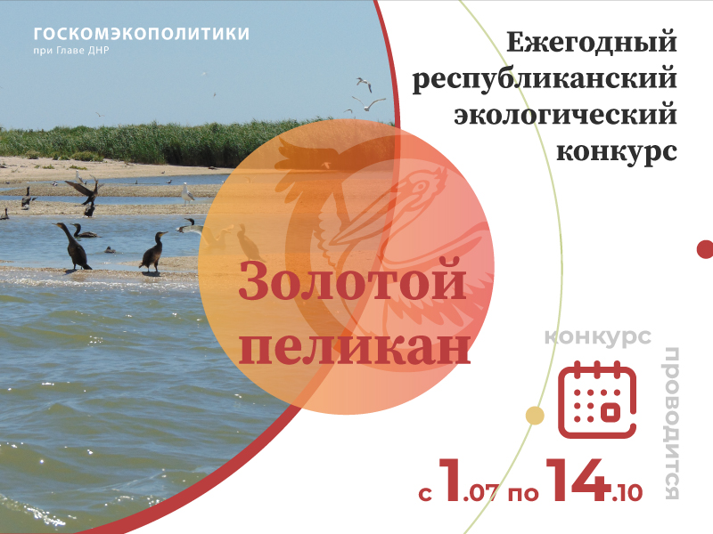 Государственный комитет по экологической политике и природным ресурсам при Главе ДНР объявляет о проведении с 1 июля по 14 октября 2022 года Республиканского экологического конкурса «Золотой пеликан». Третий год подряд к участию приглашаются все желающие лица, которые имеют активную гражданскую позицию и сегодня не остаются равнодушными к состоянию окружающей природной среды, и прикладывают немалую силу для её сохранения и улучшения. «Название конкурса выбрано не случайно. Каждый год на Кривую косу в районе Седово к нам на сезонное размещение и гнездование прилетают кудрявые пеликаны (своё название птицы получили благодаря изящному кудрявому хохолку из перьев на затылке). Эти птицы занесены в Красную книгу МСОП со статусом уязвимый (Vulnerable).