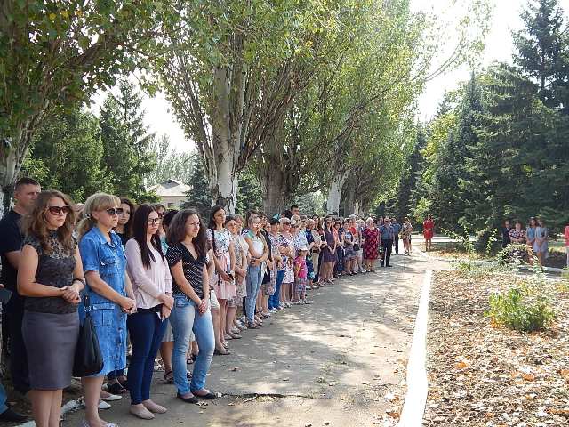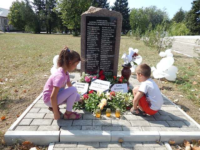 | В пятницу, 31 августа 2018 года, в рамках акции памяти «Они не услышат школьный звонок», возле Мемориального комплекса погибшим воинам поселка Старобешево, собрались жители района, чтобы почтить память погибших во время боевых действий детей Донбасса. За четыре года война унесла жизни свыше сотни ребят. На территории Старобешевского района погибли трое детей. Перед собравшимися выступили первый заместитель главы администрации Старобешевского района Сергей Федоренко и руководитель ОО «Молодая республика» Старобешевского района Александра Ралитная. Присутствующие почтили погибших минутой молчания, и возложили цветы к Памятному знаку погибшим жителям района во время боевых действий.