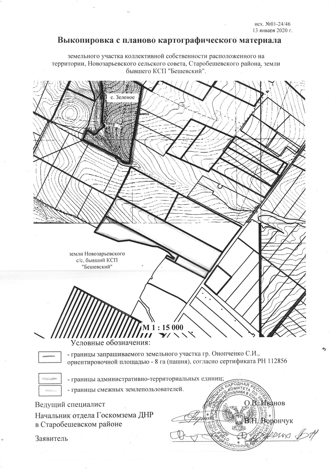 | Администрация Старобешевского района информирует о неиспользуемых земельных участках сельскохозяйственного назначения и о намерении передать их в аренду для использования их по целевому назначению заинтересованным лицам. Просим предоставить информацию от собственников (пользователей), наследников, правопреемников, уполномоченных лицах о намерении использования указанных земельных участков, предоставить согласие на передачу их в аренду по телефону: 2-25-14 отдел архитектуры администрации каб. 113, в соответствии с исполнением полномочий, предусмотренных пунктом 5.5 Временного порядка предоставления в постоянное пользование и передачи в аренду земельных участков на территории Донецкой Народной Республики, утвержденного Постановлением Совета Министров Донецкой Народной Республики от 02.09.2015 №17-15 (с изменениями и дополнениями). Земельныйучасток расположен на территории Новозарьевской сельскойадминистрации, земли бывшего КСП «Бешевский» (согласно приложения): земельный участок площадью -8,00 га.пашня. По истечению двухмесячного срока, в случае отсутствия официальной информации от собственников (пользователей), а также их наследников, правопреемников и уполномоченных лиц, будет принято решение уполномоченным органом исполнительной власти о передаче заинтересованному лицу (арендатору) земельного участка в аренду для использования по целевому назначению. Договор аренды таких земельных участков заключается на срок до момента обращения собственников (пользователей), а также их наследников, правопреемников и уполномоченных лиц земельных участков в работе по уборке урожая, но не менее одного года. В случае отсутствия информации от собственников (пользователей), а также их наследников, правопреемников и уполномоченных лиц о намерении возобновить свои права в части использования земельных участков за один месяц до окончания действия договоров аренды, договор возобновляется (продлевается) на такойже срок, путем заключения дополнительного соглашения с заинтересованным лицом (арендатором)