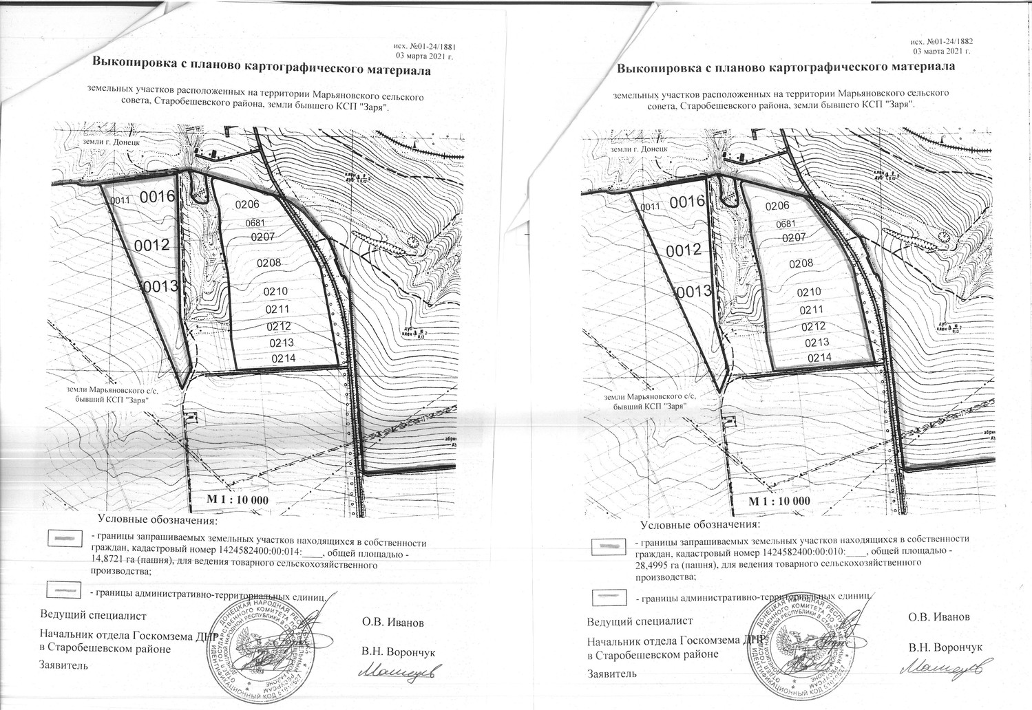 | Администрация Старобешевского района информирует о неиспользуемых земельных участках сельскохозяйственного назначения и о намерении передать их в аренду для использования их по целевому назначению заинтересованным лицам. Просим предоставить информацию от собственников (пользователей), наследников, правопреемников, уполномоченных лицах о намерении использования указанных земельных участков, предоставить согласие на передачу их в аренду по телефону: 2-25-14 отдел архитектуры администрации каб. 113, в соответствии с исполнением полномочий, предусмотренных пунктом 5.5 Временного порядка предоставления в постоянное пользование и передачи в аренду земельных участков на территории Донецкой Народной Республики, утвержденного Постановлением Совета Министров Донецкой Народной Республики от 02.09.2015 №17-15 (с изменениями и дополнениями). Земельные участки расположены на территории Марьяновской сельской администрации, земли частной собственности бывшего КСП «Заря» (согласно приложения): земельный участок ориентировочной площадью –28,4995 га.пашня, земли частной собственности сельскохозяйственного назначения. земельный участок ориентировочной площадью - 14,8721 га.пашня, земли частной собственности сельскохозяйственного назначения. По истечению двухмесячного срока, в случае отсутствия официальной информации от собственников (пользователей), а также их наследников, правопреемников и уполномоченных лиц, будет принято решение уполномоченным органом исполнительной власти о передаче заинтересованному лицу (арендатору) земельного участка в аренду для использования по целевому назначению. Договор аренды таких земельных участков заключается на срок до момента обращения собственников (пользователей), а также их наследников, правопреемников и уполномоченных лиц земельных участков в работе по уборке урожая, но не менее одного года. В случае отсутствия информации от собственников (пользователей), а также их наследников, правопреемников и уполномоченных лиц о намерении возобновить свои права в части использования земельных участков за один месяц до окончания действия договоров аренды, договор возобновляется (продлевается) на такой же срок, путем заключения дополнительного соглашения с заинтересованным лицом (арендатором)