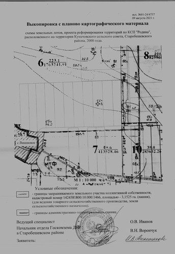 | Администрация Старобешевского района информирует о неиспользуемых земельных участках сельскохозяйственного назначения и о намерении передать их в аренду для использования их по целевому назначению заинтересованным лицам. Просим предоставить информацию от собственников (пользователей), наследников, правопреемников, уполномоченных лицах о намерении использования указанных земельных участков, предоставить согласие на передачу их в аренду по телефону: 2-25-14 отдел архитектуры администрации каб. 113, в соответствии с исполнением полномочий, предусмотренных пунктом 5.5 Временного порядка предоставления в постоянное пользование и передачи в аренду земельных участков на территории Донецкой Народной Республики, утвержденного Постановлением Совета Министров Донецкой Народной Республики от 02.09.2015 №17-15 (с изменениями и дополнениями). Земельныеучастки расположены на территории Кумачовскойсельскойадминистрации, земли коллективной собственностибывшего КСП «Родина», (согласно приложения): По истечению двухмесячного срока, в случае отсутствия официальной информации от собственников (пользователей), а также их наследников, правопреемников и уполномоченных лиц, будет принято решение уполномоченным органом исполнительной власти о передаче заинтересованному лицу (арендатору) земельного участка в аренду для использования по целевому назначению. Договор аренды таких земельных участков заключается на срок до момента обращения собственников (пользователей), а также их наследников, правопреемников и уполномоченных лиц земельных участков в работе по уборке урожая, но не менее одного года. В случае отсутствия информации от собственников (пользователей), а также их наследников, правопреемников и уполномоченных лиц о намерении возобновить свои права в части использования земельных участков за один месяц до окончания действия договоров аренды, договор возобновляется (продлевается) на такойже срок, путем заключения дополнительного соглашения с заинтересованным лицом (арендатором)