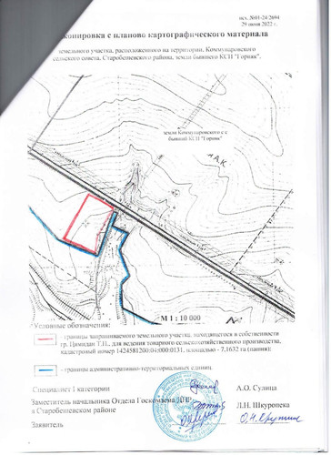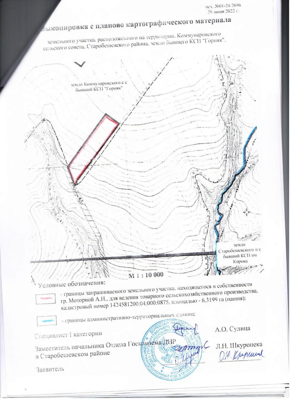 Администрация Старобешевского района информирует о неиспользуемых земельных участках сельскохозяйственного назначения и о намерении передать их в аренду для использования их по целевому назначению заинтересованным лицам. Просим предоставить информацию от собственников (пользователей), наследников, правопреемников, уполномоченных лицах о намерении использования указанных земельных участков, предоставить согласие на передачу их в аренду по телефону: 2-25-14 отдел архитектуры администрации каб. 113, в соответствии с исполнением полномочий, предусмотренных пунктом 5.5 Временного порядка предоставления в постоянное пользование и передачи в аренду земельных участков на территории Донецкой Народной Республики, утвержденного Постановлением Совета Министров Донецкой Народной Республики от 02.09.2015 №17-15 (с изменениями и дополнениями). Земельные участки расположены на территории Коммунаровской сельской администрации, земли бывшего КСП «Горняк», площадью 7,1632 га пашни, кадастровый номер 1424581200:04:000:0131; площадью 6,3199 га пашни, кадастровый номер 1424581200:04:000:0875; площадью 6,0332 га пашни, кадастровый номер 1424581200:04:000:0964, (согласно приложения): По истечению двухмесячного срока, в случае отсутствия официальной информации от собственников (пользователей), а также их наследников, правопреемников и уполномоченных лиц, будет принято решение уполномоченным органом исполнительной власти о передаче заинтересованному лицу (арендатору) земельного участка в аренду для использования по целевому назначению. Договор аренды таких земельных участков заключается на срок до момента обращения собственников (пользователей), а также их наследников, правопреемников и уполномоченных лиц земельных участков в работе по уборке урожая, но не менее одного года. В случае отсутствия информации от собственников (пользователей), а также их наследников, правопреемников и уполномоченных лиц о намерении возобновить свои права в части использования земельных участков за один месяц до окончания действия договоров аренды, договор возобновляется (продлевается) на такой же срок, путем заключения дополнительного соглашения с заинтересованным лицом (арендатором)
