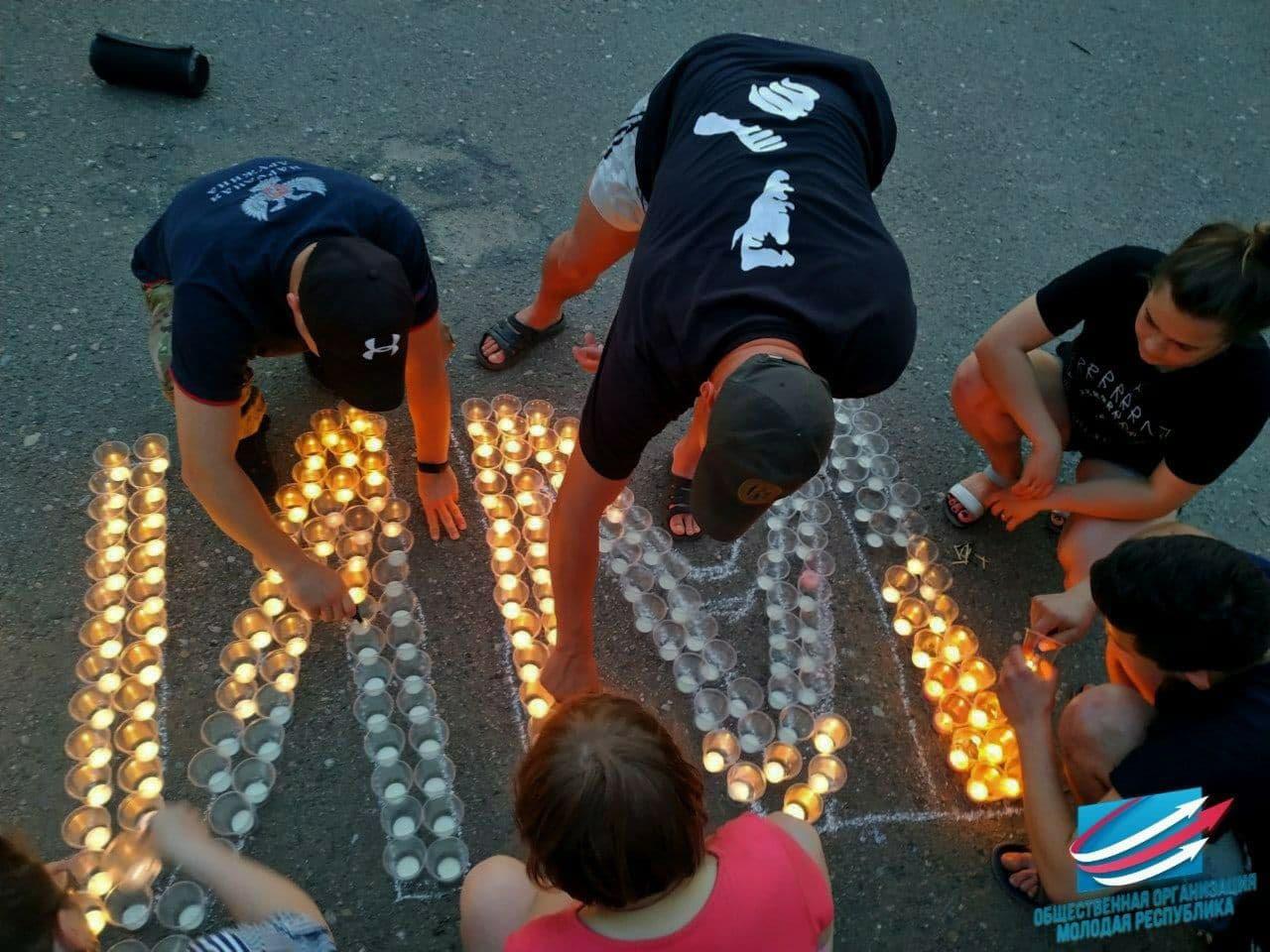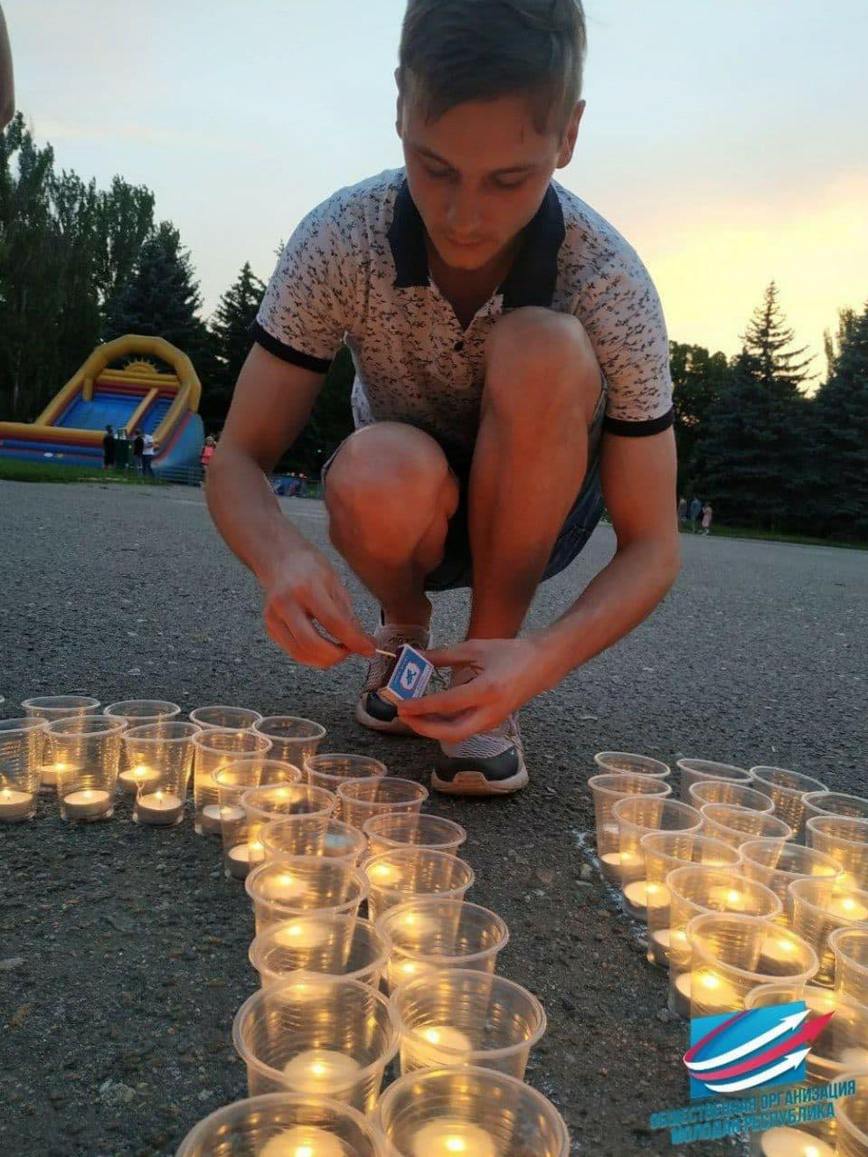 | 22 июня активисты Старобешевского штаба «Молодой Республики», совместно с жителями пгт.Новый Свет выложили из свечей надпись «Помним». Они зажгли более пятисот свечей в память о каждой жизни, которую унесла Великая Отечественная война. Каждый год 22 июня — День памяти и скорби, годовщина начала самой кровопролитной из многочисленных войн в защиту национальной целостности, суверенитета и права на жизнь нашей страны и нашего народа. Данное мероприятие проводится с целью формирования чувства патриотизма и гордости за свое Отечество, воспитание любви к Родине, родному краю, уважения к подвигам земляков, одержавших победу в Великой Отечественной войне, формирование у подрастающего поколения активной гражданской позиции. К акции присоединились дети, подростки, старше поколение, а также среди них были люди, приехавшие из Российской Федерации. Отметим, что организаторами акции выступила «Молодая Республика» при поддержке «Русского Центра», «Единой России» и «Волонтёров Победы». https://t.me/starobeshevskiy/2615 | |