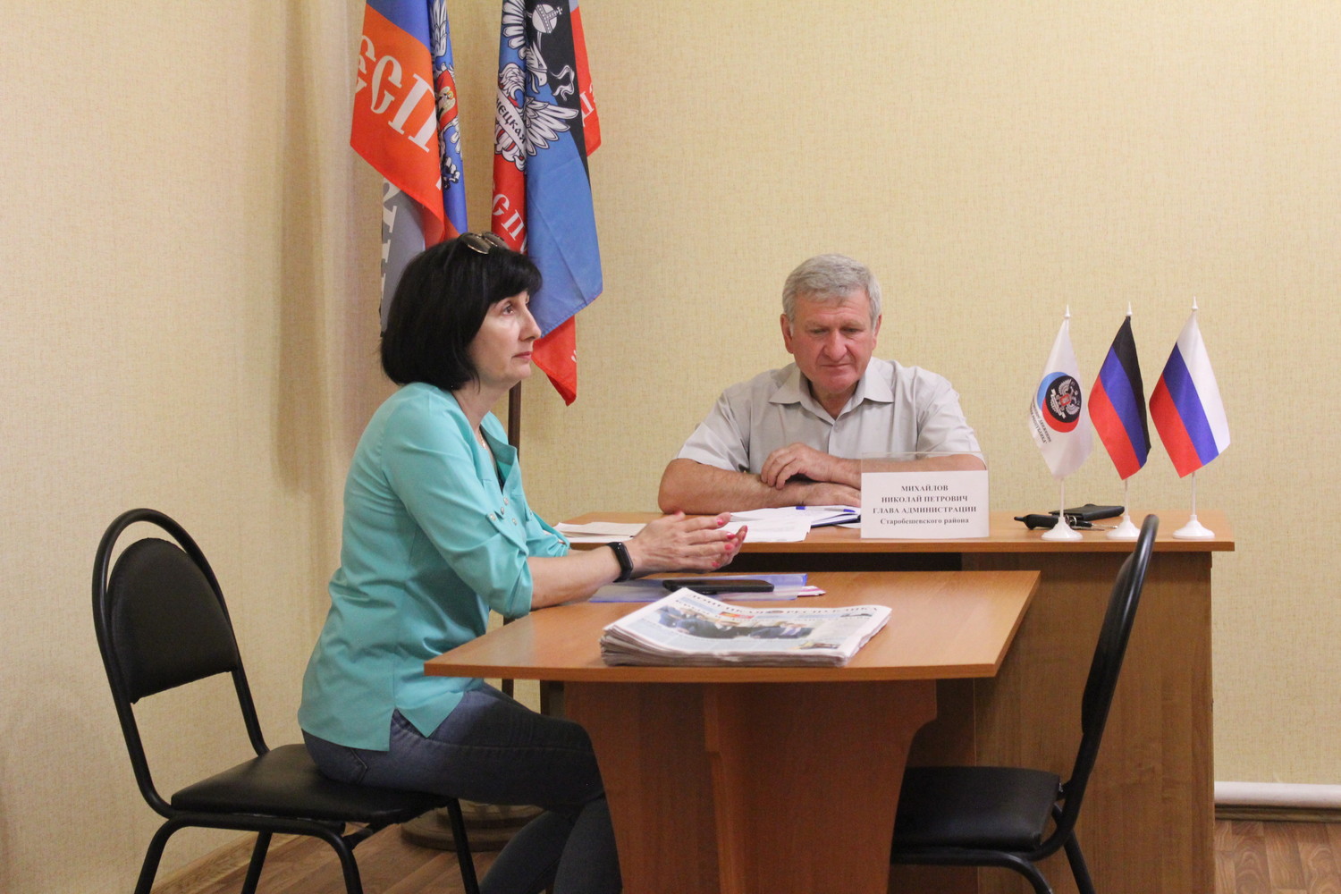 Сегодня, 15 июня, глава администрации района Николай Михайлов провел личный прием граждан в Общественной Приёмной Председателя Общественного Движения «Донецкая Республика» Д.В. Пушилина в Старобешевком районе . Жители района обратились к Николаю Петровичу с различными вопросами, среди которых о пересечении границы Донецкой Народной Республики с Луганской Народной Республикой, Украиной и Российской Федерацией, водоснабжении п.Старобешево и г.Комсомольское, получении паспорта гражданина ДНР и РФ. На все заданные вопросы Николай Петрович предоставил ответы и разъяснения согласно действующего законодательства, некоторые взяты на контроль.