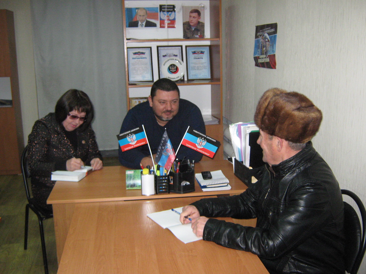 В общественной приемной Старобешевского местного отделения Общественного Движения «Донецкая Республика» провел прием граждан и.о. министра культуры Донецкой Народной Республики Желтяков М.В.