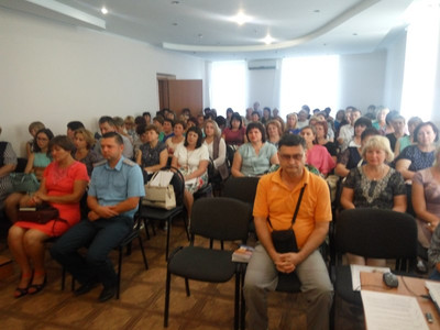 В зале заседаний администрации Старобешевского района 29.08.2018 года прошла расширенная коллегия управления образования «Об итогах деятельности образовательных учреждений в 2017-2018 учебном году и задачи на новый 2018/2019 учебный год». Мероприятие открыла начальник управления образования В.М.Немилостивая, поздравив педагогов и участников мероприятия с началом нового учебного года. На коллегии присутствовали специалисты и методисты управления, председатель Старобешевской районной территориальной профсоюзной организации профессионального союза работников образования и науки Донецкой Народной Республики Михайлова С.Ф., директора школ и заведующие дошкольных образовательных учреждений, руководители учреждений дополнительного образования, председатели профсоюзных комитетов образовательных учреждений, представители районных СЭС и МЧС. Присутствующими были рассмотрены и заслушаны следующие вопросы в соответствии с повесткой дня: об итогах работы образовательных учреждений района в 2017-2018 учебном году, приоритетные направления развития отрасли в 2018-2019 учебном году; о работе районной территориальной профсоюзной организации профессионального союза работников образования и науки ДНР в 2017-2018 учебном году; пути реализации приоритетных направлений работы в образовательных организациях района в 2017-2018 учебном году; результаты процесса обучения в дошкольных образовательных учреждениях района за 2017-2018 учебный год; мониторинг результатов государственной итоговой аттестации по образовательным программам среднего общего образования в 2018 году; приоритеты деятельности методического кабинета в условиях реализации обновленных государственных образовательных стандартов и основных образовательных программ 2018-2019 учебного года; о подготовке образовательных учреждений к новому учебному году и обеспечении пожарной безопасности во время учебно-воспитательного процесса; санитарно-гигиенические требования к организации учебно-воспитательного процесса.